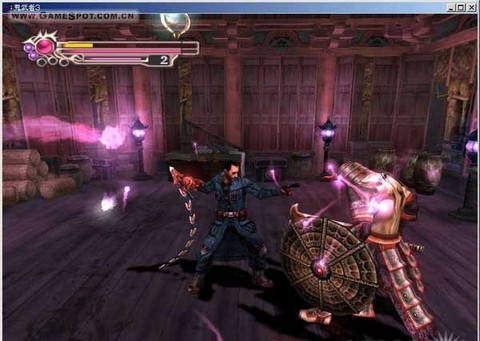 8. 跑到尽头存档,然后开门与山猪BOSS对战:尽量使用雷斩刀的鬼术攻击,利用鬼术后的攻击机会,注意多格挡和吸魂。