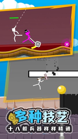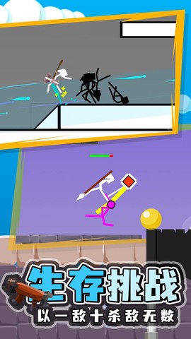 2、在这场充满创意的物理格斗中,你将操控火柴人,尽情释放你的战斗本能,千万别客气,了断对手就是最终目标。