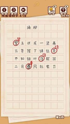游戏中融入了诗词默写的元素,让你在挑战中寻找错误的同时,品味汉字的魅力。