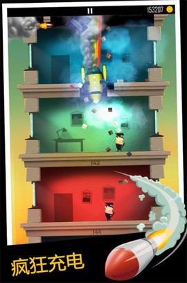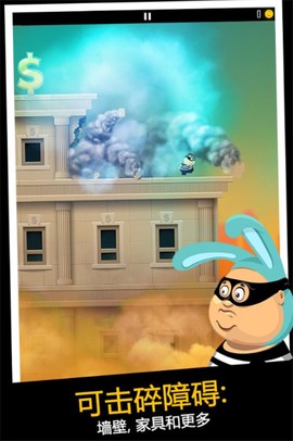 随着你不断深入游戏的楼层,难度也在逐渐升级,陷阱和敌人则会越来越多!游戏节奏越来越快,动不动一个小失误就可能前功尽弃。除了警察和飞弹会一击致命,你还得提防激光枪的光线,被打中可就会缩小,缩小后的角色对地面造成的破坏力将大幅度下降,玩得可谓是惊险而刺激。