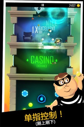 老爸曾是小偷官方正版,或许听起来像是个搞笑的游戏,其实它是一款由Rebel Twins倾力开发的益智闯关模拟冒险手游。游戏的操作极其简单,单手即可完成所有动作。能够让你体验到爸爸的超级跳跃和冲击,向下滑动可以使爸爸像个破坏王一样撞穿地面。你需要在猫捉老鼠的紧张气氛中,避开飞来的导弹和追逐的警察,争取达到最低层。乍一看似乎很简单,但若想获得高分可就没有那么容易。关键在于掌握跳跃时机,把握好落地的瞬间,才能巧妙避开一波波的导弹。