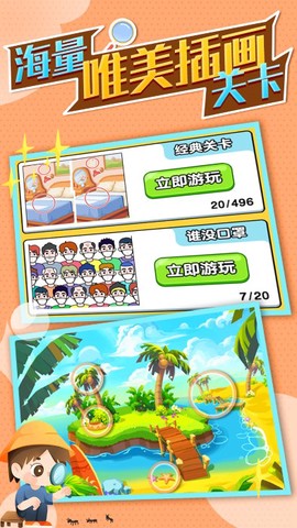 找茬达人是一款极具挑战性的手机找茬游戏,深受游戏爱好者的喜爱。这款APP不仅能为用户提供一场视觉盛宴,还能有效提升你的观察力和反应能力。每一个关卡的设计都经过精心打磨,让你在轻松愉快的氛围中,充分锻炼大脑,快速找到隐藏的不同之处。如果你想挑战自己,这个游戏无疑是个不错的选择!