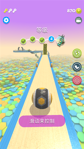 通过滑动屏幕,你可以灵活控制小球的移动。迅速上划则能帮助你加速,而且屏幕右侧的收集任务让收集球体变得更有趣。