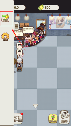 4、顾客数量的增多是店铺收入的基础,因此别忘了点击“宣传”按钮,去店外分发一些传单,吸引更多的顾客。