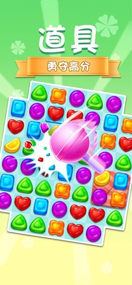 3. 五个糖果形成T型或L型时,惊喜的炸弹道具就会出现,瞬间消除周围的糖果,让你的战局更加轻松。