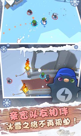 1、Q萌角色轻松对战:掌握不同技能的部落企鹅,调配喜欢的角色组成3V3对战阵容。