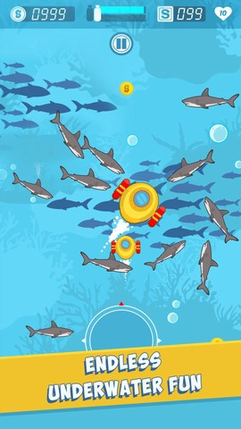4、随着你游戏的推进,鲨鱼的速度和数量也会越来越猛,在后期,你甚至连呼吸都得小心谨慎,稍有松懈,就可能瞬间被淘汰。
