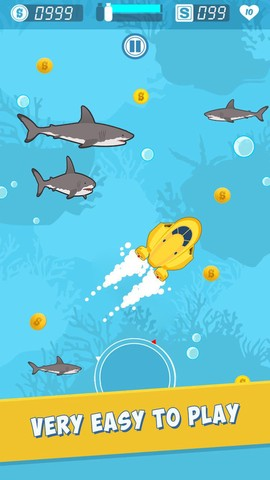 2、当遭遇成群的鲨鱼封锁路口时,不要硬撞,等它们的尾巴刚过去的那一瞬间再动,这样你能节省好多次重来的时间。