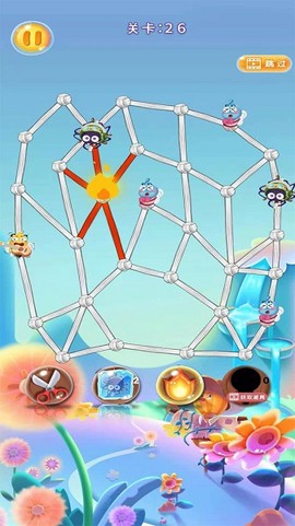4、选择好绳索的切割位置,让小蜜蜂安全降落,快来挑战你的精准度吧!