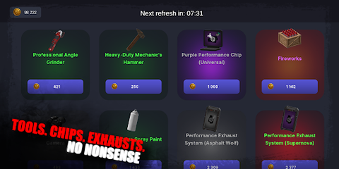 这款游戏提供了一个极为真实的汽车市场体验,每一辆车都有自己的历史、里程、稀有性以及独特的外观。即使是细微的损坏和缺陷也将影响最终价格,市场更是每12小时刷新一次,给你不断寻找超值优惠的机会。保持你的信息流整洁,删除那些不再需要的列表,让卓越的好车时刻在你的视野之内。