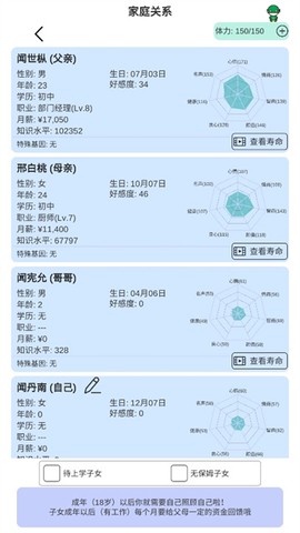 1. 初始时,系统将随机生成你的家庭背景,这些条件将决定你早期的成长环境,让每次体验都有所不同。