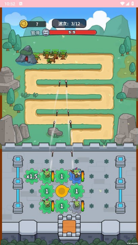 4、在消灭敌人后,利用获得的金币解锁新的齿轮,合并相同的齿轮以提升等级,增强战斗能力。