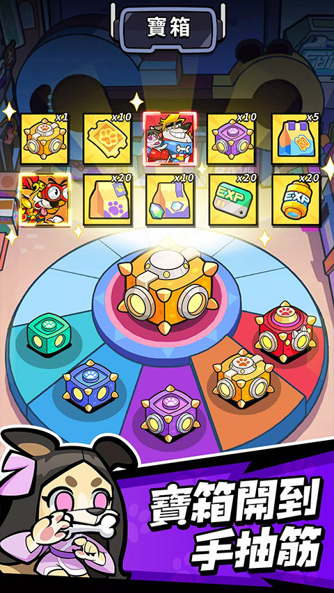 1. 集结狗狗大军,开启战斗狂欢!你不再是一个普通的打工人,而是能够带领这些可爱的狗狗英雄们逆袭的狗神。界面中狂送999抽的活动让你一次性暴力变成欧皇,再也不怕抽卡失利。宝箱轻松拿到手抽筋,真心不怕你抽不到,就怕你抽不动!