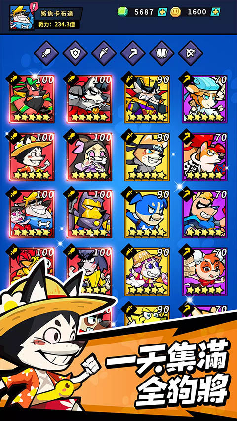 2. 每天登录即享各种养成加速道具,提升你的狗狗英雄,打造一支最强团队。运用策略在这场史上最强英雄大乱斗中,轻松集结超过50名可爱的狗狗英雄,分分钟逆袭对手以超高战斗力。加入联盟,团队合作开启狗狗世界的新冒险,争当最强联盟的称号!