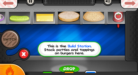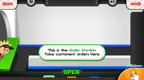 4、将小票放在订单夹上,及时将汉堡交给顾客,赢得评分和金币。