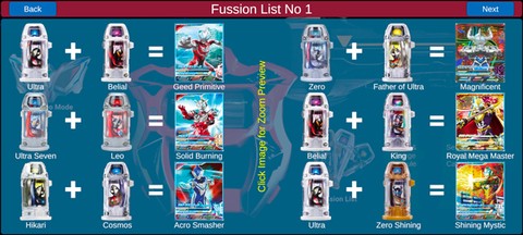 4. 点击Fussion List,查看不同胶囊组合能召唤出哪些奥特曼;