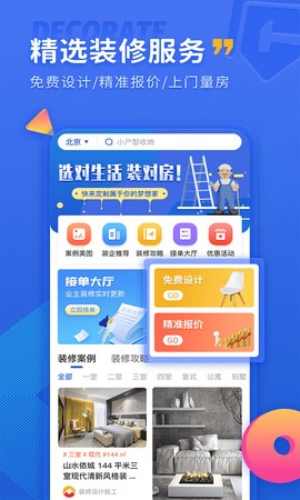 3、【免费报价】借助于同城装修的大数据,综合各种建材信息,软件能够精准计算出你的装修物料和人工费用,给你提供免费的装修报价,让你心里有个底。