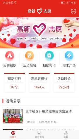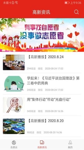 4、想要查看志愿活动资讯吗?点击高新资讯按钮,一个个精彩活动等你来品鉴。