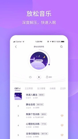 1、为失眠者特别设计的康复训练平台,致力于从多个方面助你重返健康的睡眠;