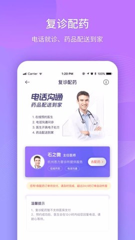 5、前往复诊配药模块,了解预约流程后即可轻松完成约诊,沟通无阻。