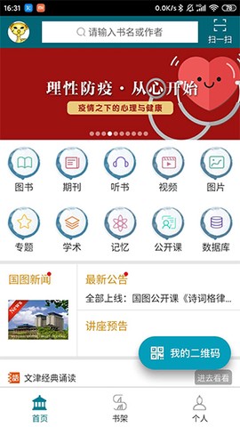 这款app绝不会让你错过任何动人的信息,实时发布国家图书馆的新闻、公告和讲座预告,甚至每日推送一条文津经典的诗词名句,提升你的文化素养,让你在书香中徜徉。