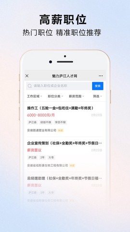 魅力庐江网手机移动版为你提供了最新的本地招聘信息,帮你快速找到理想的工作!这里不仅有丰富的工作机会,还汇聚了庐江最新的美食推荐、交友活动、二手交易以及便利的服务信息,让你的生活更加多姿多彩。