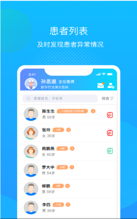 1. 患者列表功能帮助医生及时发现并关注异常病患,确保每位患者都能得到及时的关怀和处理。