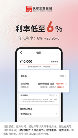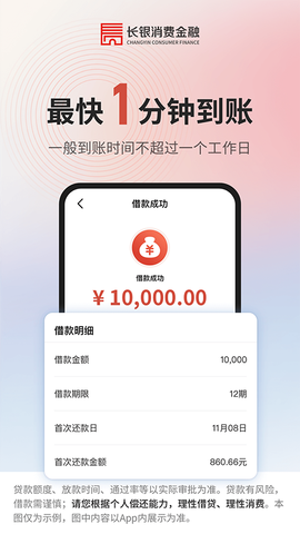 长银消费金融app是一款极具创新的综合金融手机平台,经过中国银监会批准,为拥有稳定工作的用户量身打造免担保、免抵押的个人消费贷款产品。强大的线上全自动信审模式,让您在瞬息之间完成贷款申请,现金迅速到账,轻松分期还款,最长可达12期。长银消费金融涵盖了各类基础服务,并为用户呈现便捷的提额方案,致力于为每一位用户提供方便、迅捷与高效的一站式借款服务,让您解决资金困扰无忧无虑。