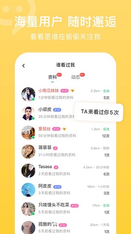 6、浏览记录:记录你和他人之间的互动,可以轻松选择打招呼。