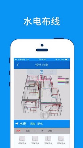 4、水电布线:精准关联水电三维呈现布线图, 720 三维半透明视图检测线路,并生成水电料单;