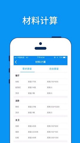 2、材料计算:选择主材规格,自动计算主材用料单;