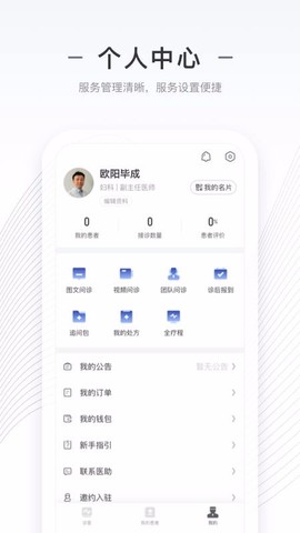 6、个人管理中心功能多样,诸如追问包、我的处方和我的公告等,帮助你有效管理工作;