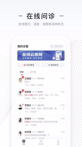 3、诊室功能窗口设计贴心,待办事项和群发助手一目了然,快速找到所需功能;
