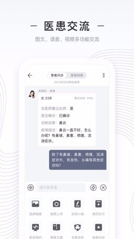 4、多样的沟通聊天工具在工具栏中应有尽有,提供拍照上传、咨询小结等,真是应对各种情况的好助手;