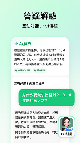 在解题的路上遇到障碍了?渴望有个老师随时在身边?让AI的题目答疑功能来帮助你,它迅速回应并耐心地解答你所有的疑惑。