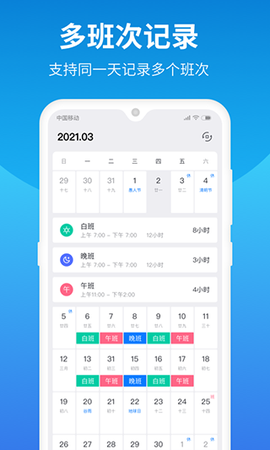 排班助手app是一款针对需要轮班的工作者而设计的工具应用。对于许多企业来说,排班是日常管理中不可或缺的一部分。对于大部分员工而言,工作时间通常是固定的,但有一些行业的从业者,如消防、交通和物流等,他们的工作时间却时常变化。这时候,一款公平、合理的排班软件显得尤为重要。排班助手app允许用户自由创建所需的班次,也线下手动添加班次,或通过智能的周期轮班来自动排班。简洁明了的日历界面,让每个人都能一目了然。强烈推荐给所有有排班需求的工作者体验一下哦!