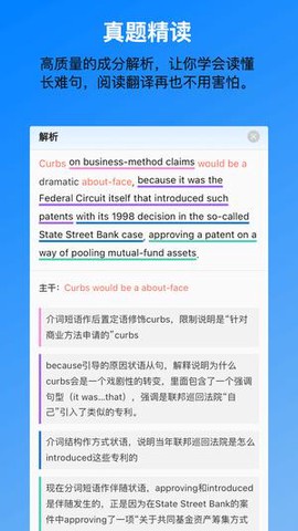 2. 软件提供单词收藏和智能抽查功能,确保重点词汇无遗漏,并针对长难句提供详细解析,帮助提升阅读理解能力。