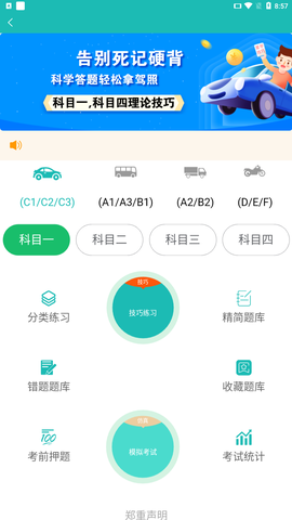速成驾考免费版是你拿到驾照路上的最佳伴侣!这款APP不仅具备专业的速成练习攻略,还能一键模拟科一到科四的知识点,结合语音讲解和单项测试功能,完全可以让你轻松应对驾考,一切都为了让你更快、更省力地通过考试!