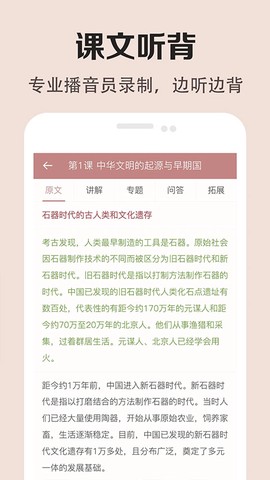 1、界面干净利落,清爽无广告,重点是它支持原文,让你随时随地可以学习历史,不必依赖传统课本。