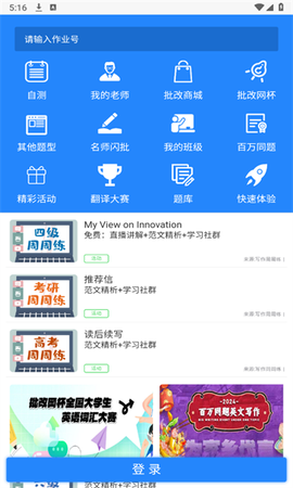 1、打开最新版本的批改网app,点击登录。