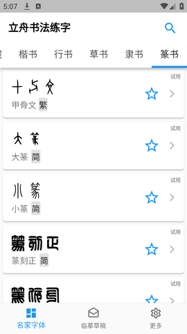 这里还有硬笔隶书、康熙字典体、大篆、小篆等多样化选择,丰富的字体库让您尽情玩味,开启书法之旅!