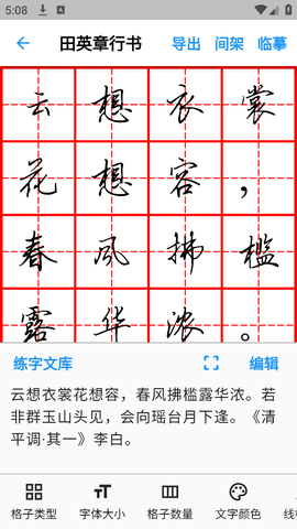 【字帖导出】您可以将自定义的字帖高清导出至相册,支持高清PDF导出,便于存档和分享。