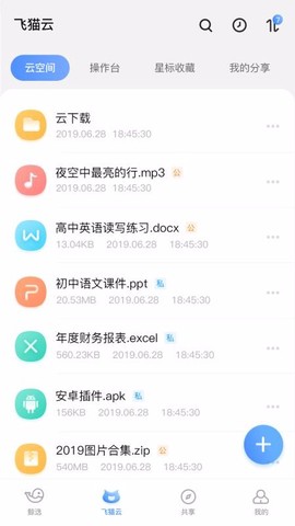 3、在飞猫云页面,你可以选择云空间、操作台、星标收藏或我的分享,查看和管理你的数据。