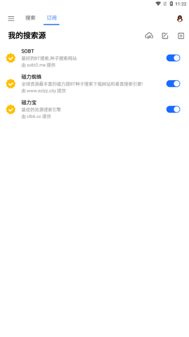 2. 直奔【订阅】页面,点击【+】便可将在线仓库中的所有搜索站点一键添加。