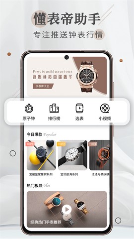 1、打开懂表帝app,首页上有原子钟、手表排行榜、选表功能,还有丰富的小视频供你欣赏。