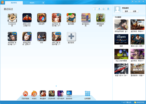1、在完成安装后,找到桌面上的快捷方式,双击运行,你会进入到软件的主界面。快玩游戏盒会自动识别你电脑的配置,并且快速导入你最近玩过的游戏路径,极大地方便了一键启动。