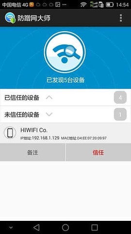 1. 一键检测连接WiFi的设备,强大的管理功能,提供了便捷的阻止选项。