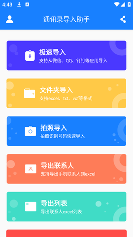 1. 本软件是一款高效的通讯录同步助手,支持将excel中的联系人迅速导入手机通讯录。
