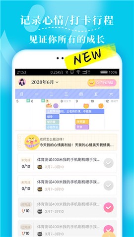5. 【行程】创建你的独特行程,打卡每天的点滴与倒数日提醒,让生活更加有序。
