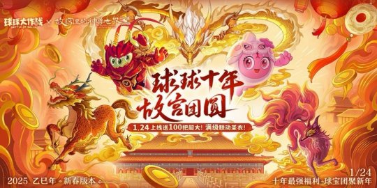 灵蛇舞动,神兽纳福!《球球大作战》已于1月24日为全体球宝带来十年春节最强福利,故宫里的神兽世界联动正式开启,上线即可免费领满级联动限定圣衣!100把超大奇妙宝箱钥匙零门槛领、经典玩法春节返场、还有绝